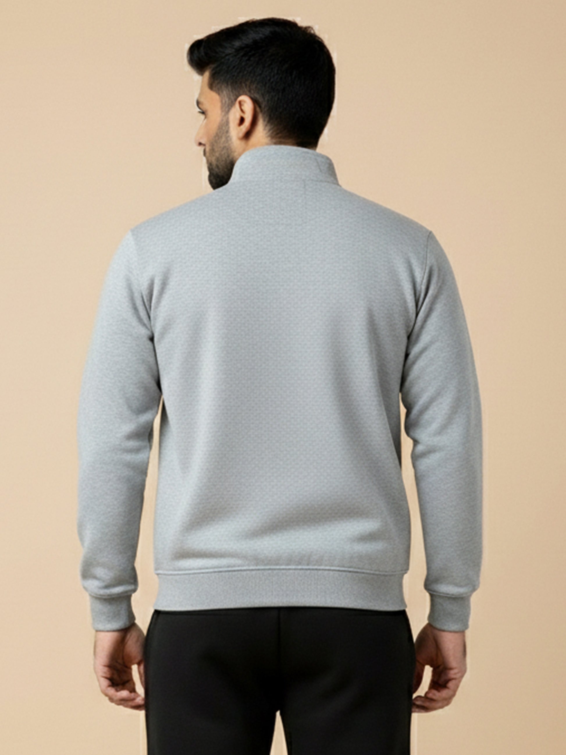 Crafted from a premium cotton-polyester fleece blend, it offers warmth and breathability in equal measure. The quilted chest panel adds texture and visual interest while providing extra insulation. The full-length YKK zipper, ribbed collar, cuffs, and hem provide a secure fit, while dual front pockets keep your essentials close at hand.